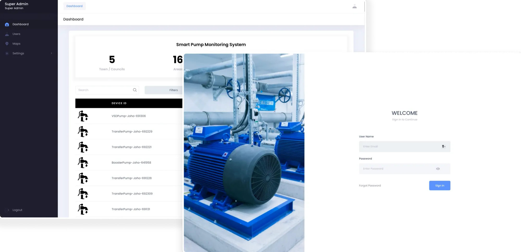 EETARP is a smart pump monitoring system; it helps administration in maintaining records for all the allocated areas, blocks, building connections, and tracking devices. Database is handled securely and efficiently.