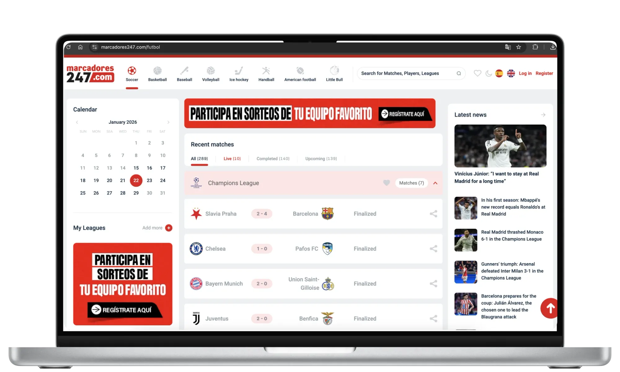 Marcadores247 is a sports platform that provides live scores, real-time match updates, and results for multiple sports including football, hockey, basketball, tennis, and more. It covers international leagues, tournaments, and local competitions, giving users instant access to scores, match events, and fixtures.